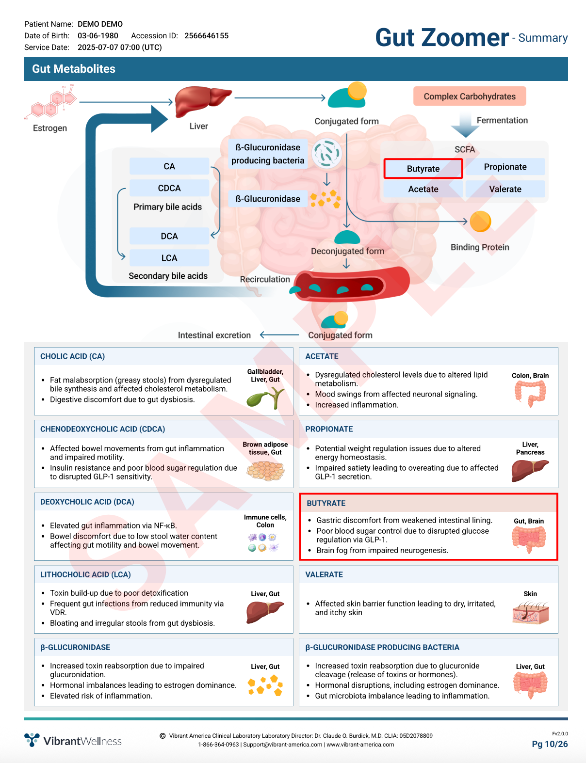 - Evaluates digestive function including short-chain fatty acid production and enzyme activity